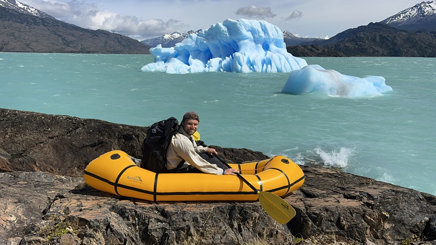 Womit wir beim Thema „brenzlige Situationen“ wären, die auch Tobias Schorcht schon erlebt hat. „Wenn ich über viele Stunden hinweg kein Wasser habe oder zwei Tage nichts zu essen, dann ist das für mich unangenehm – aber ich weiß, dass mein Körper das schafft. Da hat sich meine eigene Komfortzone im Laufe der Zeit schon ganz schön verschoben. Aber es gab auch Situationen, in denen es lebensgefährlich wurde. Einmal bin ich rückwärts vier Meter einen Felsen heruntergefallen und auf den Rücken geknallt, da hatte ich richtig Glück, dass ich mir keine Verletzungen zugezogen habe und die Sache glimpflich ausging. Ein anderes Mal bin ich mit meinem kleinen gelben Gummiboot, dass ich zur Überquerung von Flüssen und Seen nutze, in einem Fjord in einen Orkan geraten, weil ich eine falsche Information bezüglich der Wettersituation erhalten hatte. Der Orkan kam urplötzlich wie eine Wand, so schnell konnte ich gar nicht reagieren.“ Seitdem fragt Tobias Schorcht bei Überquerungen von großen Seen immer zu Hause nach, wann eine Überfahrt ungefährlich ist – denn dort sitzt die Familie und beobachtet via Satellit das Wetter am anderen Ende der Welt.