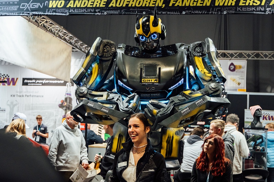 Für besonderes Aufsehen wird der „Racebot Audiron“ sorgen. Es handelt sich dabei um einen drei Meter großen Walking Act, der an einen Transformer erinnert. Er wird am Samstag und Sonntag zu erleben sein. Zudem können Kinder sich in Halle 2 kreativ austoben und ihre ganz persönlichen Kunstwerke auf Motorhauben hinterlassen.